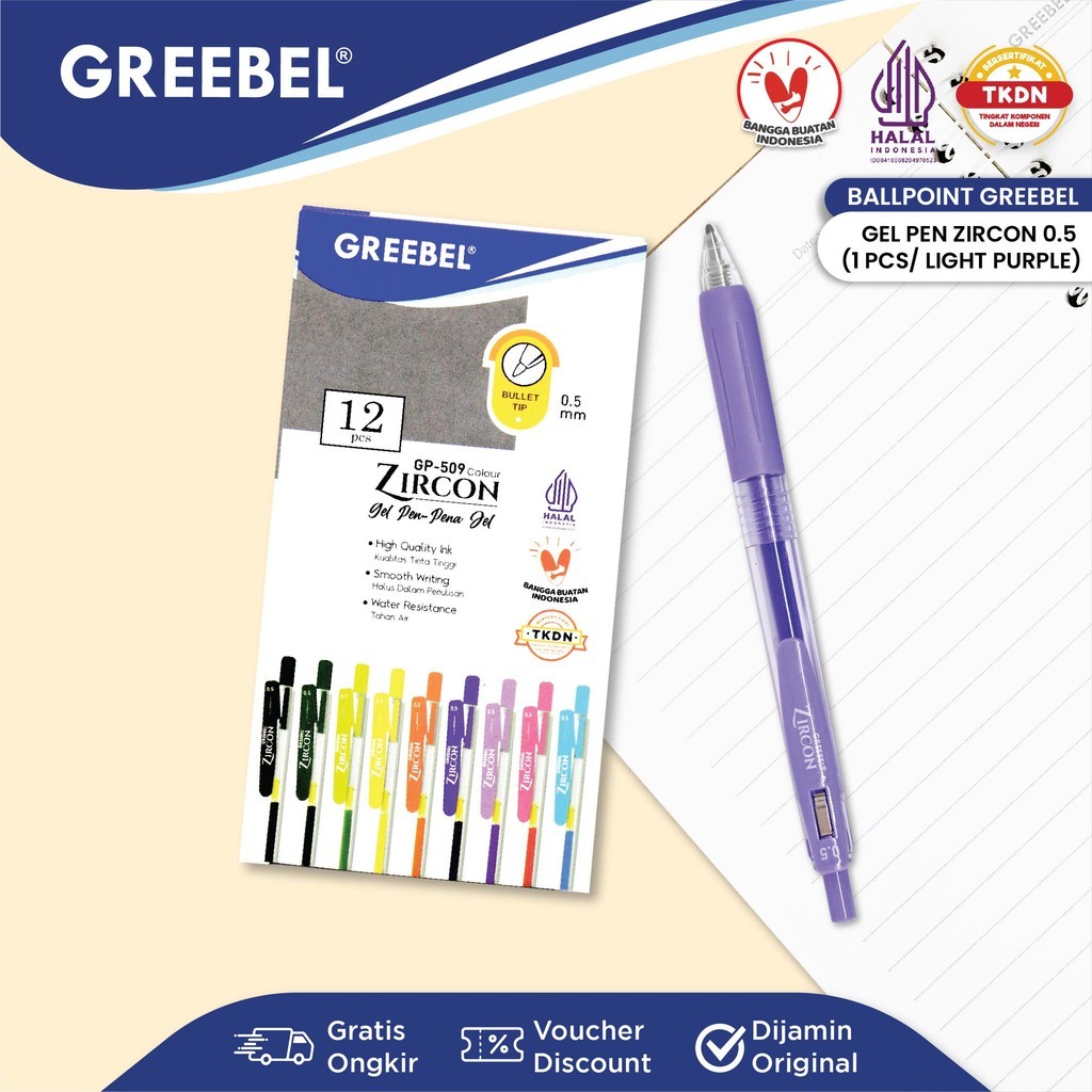 GREEBEL Pulpen Gel / Gel Pen GP-509 Zircon Light Purple 0.5 (1PCS)