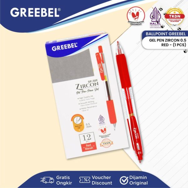 GREEBEL Pulpen Gel / Gel Pen GP-509 Zircon Merah 0.5 (1PCS)
