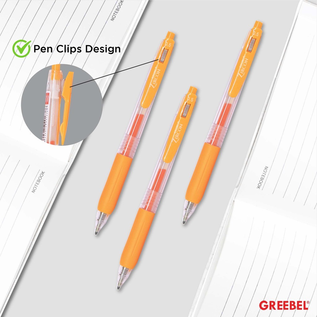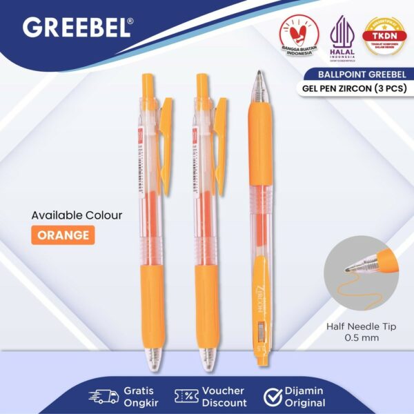 GREEBEL Pulpen Gel / Gel Pen GP-509 Zircon Orange 0.5 (3PCS/SET) / Ballpen Gel Ballpoint Bolpen Bolpoin Pena Gel