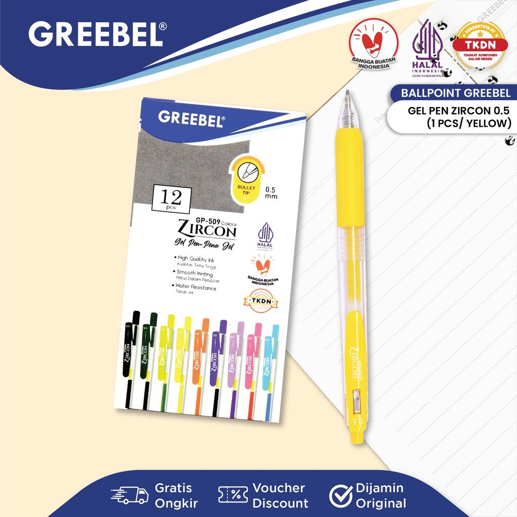 GREEBEL Pulpen Gel / Gel Pen GP-509 Zircon Yellow 0.5 (1PCS)