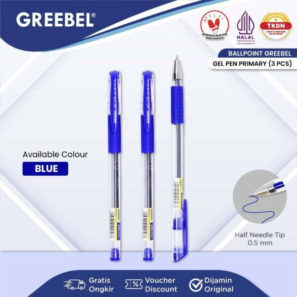 GREEBEL Pulpen Gel / Gel Pen GP-510 Primary 0.5 Biru (3PCS/SET) / Ballpen Gel Ballpoint Bolpen Bolpoin Pena Gel