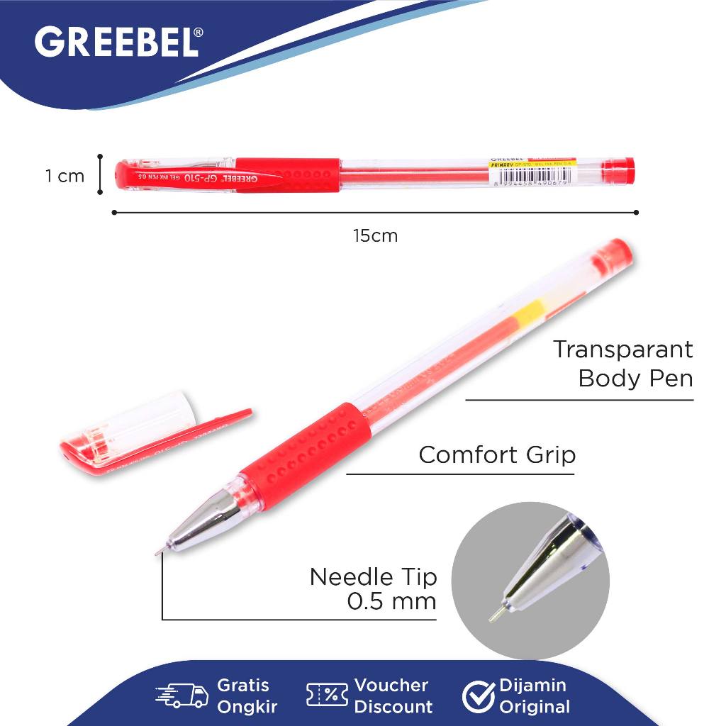 GREEBEL Pulpen Gel / Gel Pen Primary GP-510 0.5 Merah (12PCS/SET) / Ballpen Gel Ballpoint Bolpen Bolpoin Pena Gel