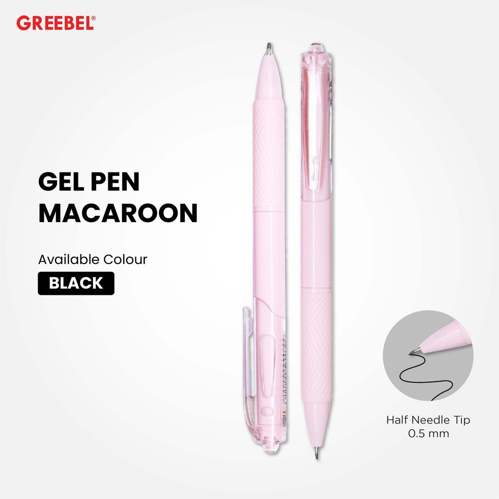 GREEBEL Pulpen Gel / Gel Pen Macaroon GP-512 0.5 Hitam (6PCS/SET) / Ballpen Gel Ballpoint Bolpen Bolpoin Pena Gel