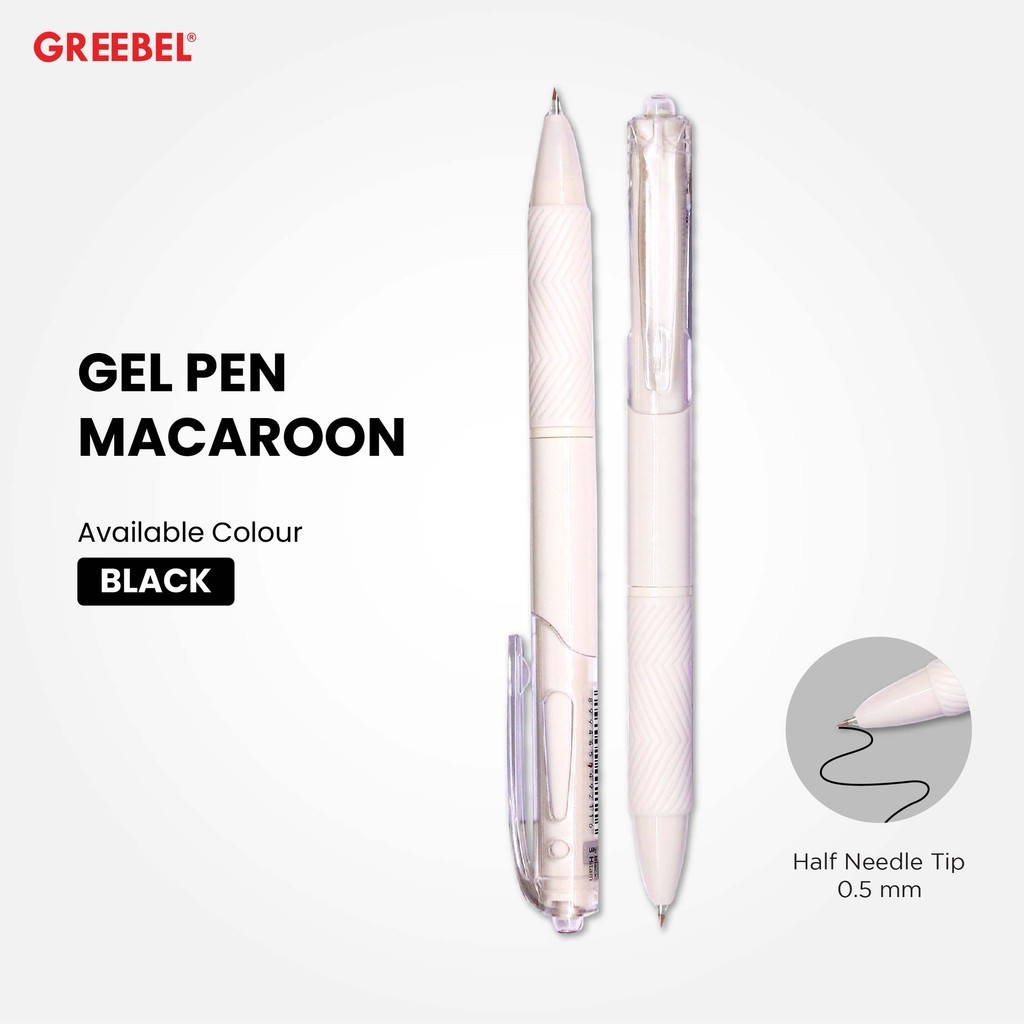 GREEBEL Pulpen Gel / Gel Pen Macaroon GP-512 0.5 Hitam (6PCS/SET) / Ballpen Gel Ballpoint Bolpen Bolpoin Pena Gel