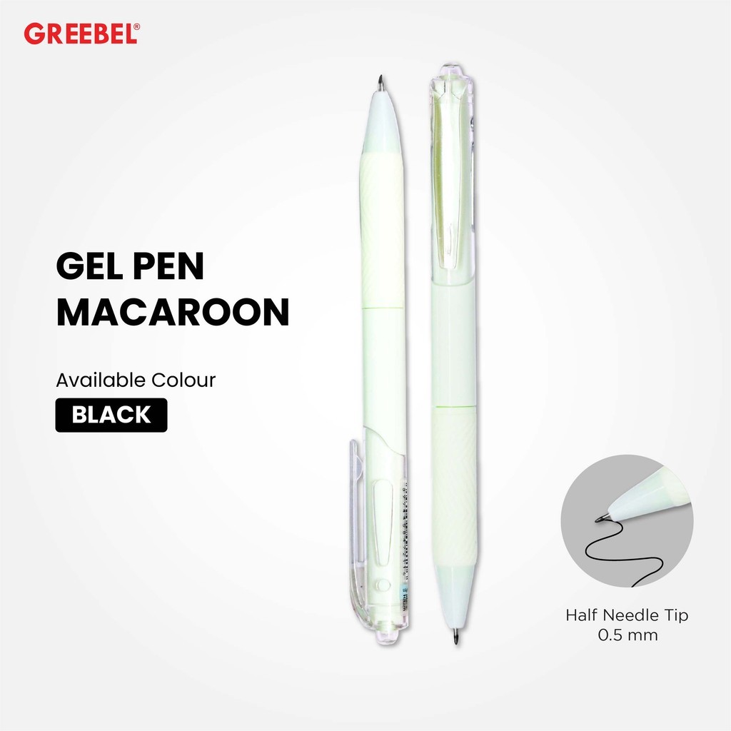 GREEBEL Pulpen Gel / Gel Pen Macaroon GP-512 0.5 Hitam (1PCS) / Ballpen Gel Ballpoint Bolpen Bolpoin Pena Gel