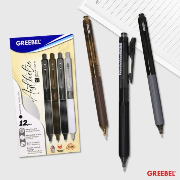 GREEBEL Pulpen Gel / Gel Pen Aesthetic GP-513 0.5 Hitam (12PCS/SET) / Ballpen Gel Ballpoint Bolpen Bolpoin Pena Gel
