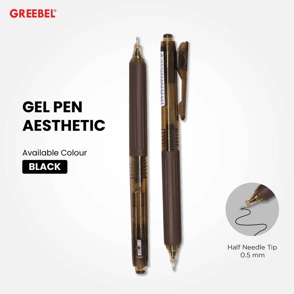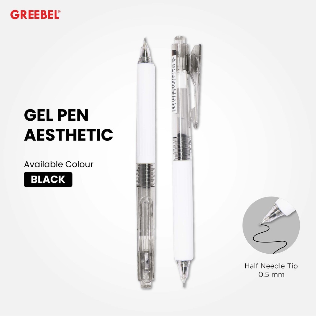 GREEBEL Pulpen Gel / Gel Pen Aesthetic GP-513 0.5 Hitam (6PCS/SET) / Ballpen Gel Ballpoint Bolpen Bolpoin Pena Gel