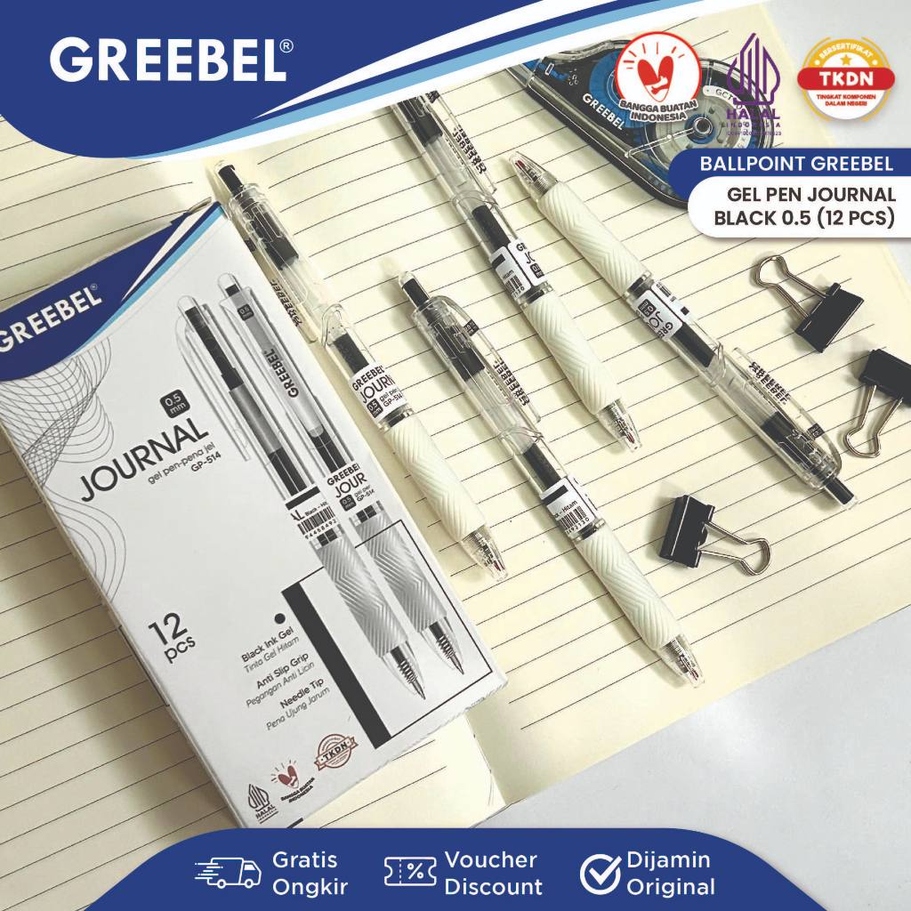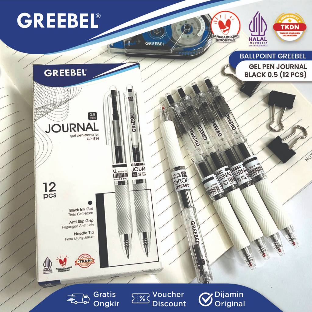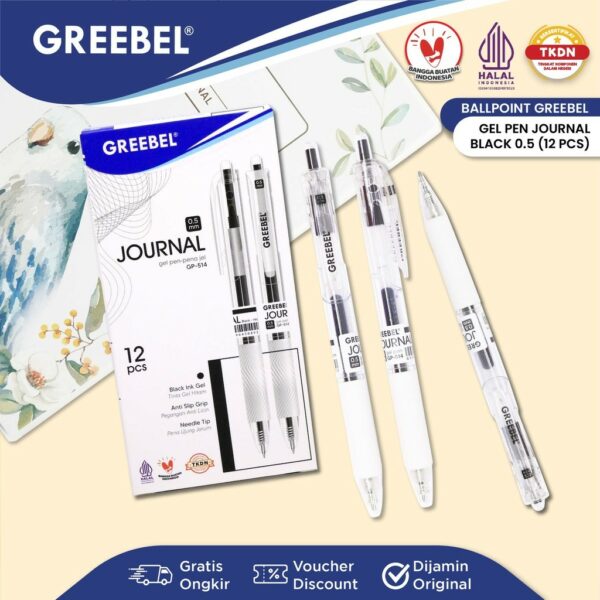 GREEBEL Pulpen Gel / Gel Pen GP-514 Journal 0.5 Hitam (12PCS/SET) / Ballpen Ballpoint Bolpen Bolpoin Pen Gel