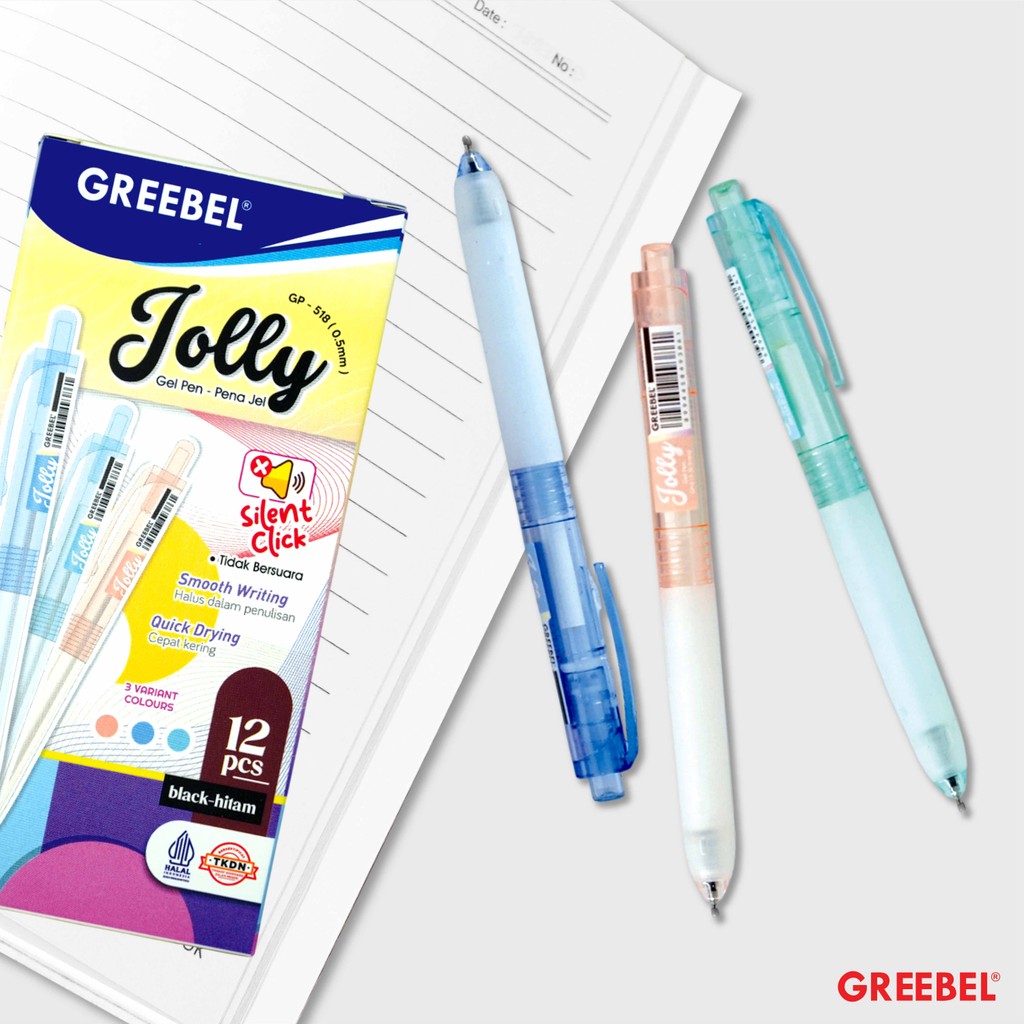 GREEBEL Pulpen Gel / Gel Pen Jolly 0.5 GP-518 (12PCS/SET) / Ballpoint Bolpen Bolpoin Pena Gel