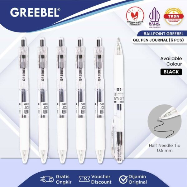 GREEBEL Pulpen Gel / Gel Pen Journal GP-514 0.5 Hitam (6PCS/SET)