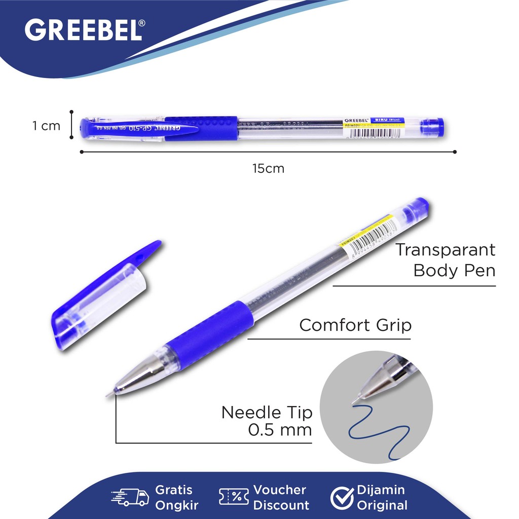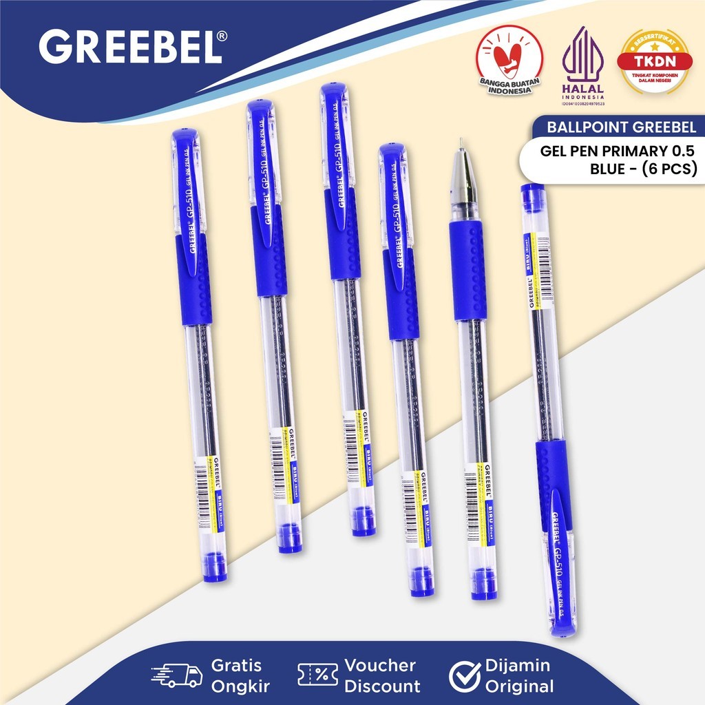 GREEBEL Pulpen Gel / Gel Pen Gel GP-510 Primary 0.5 Biru (6PCS/SET) / Pulpen Greebel / Ballpoint / Ballpen Gel