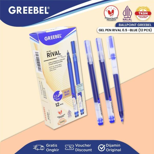 GREEBEL Pulpen Gel / Gel Pen Rival GP-502 0.5 Biru (12PCS/SET) / Ballpen Gel Ballpoint Bolpen Bolpoin Pena Gel