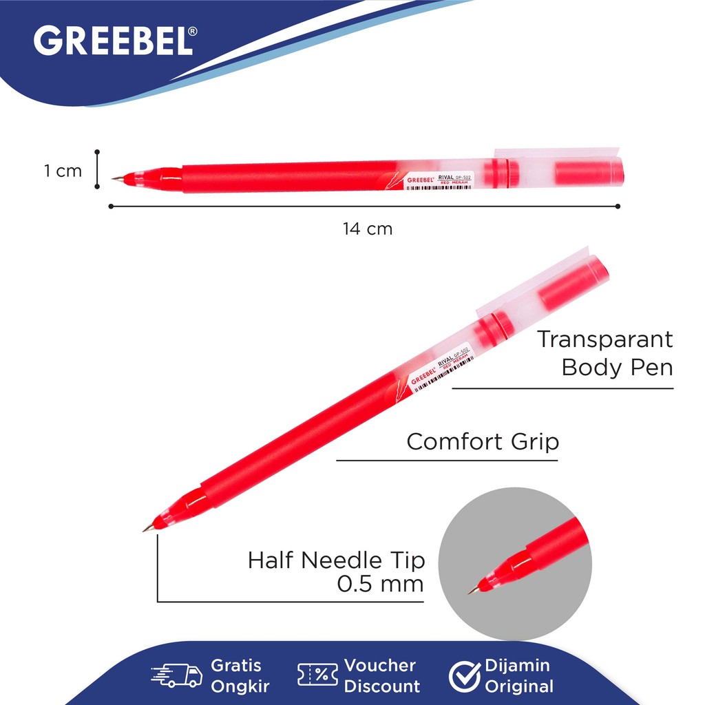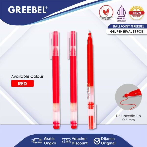 GREEBEL Pulpen Gel / Gel Pen Rival GP-502 0.5 Merah (3PCS/SET) / Ballpen Gel Ballpoint Bolpen Bolpoin Pena Gel