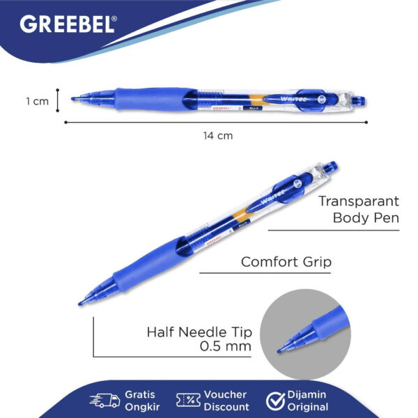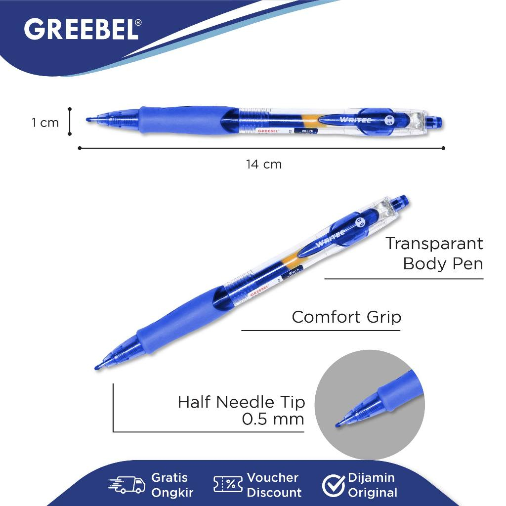 GREEBEL Pulpen Gel / Gel Pen Writec GP-503 0.5 Biru (12PCS/SET) / Ballpen Gel Ballpoint Bolpen Bolpoin Pena Gel