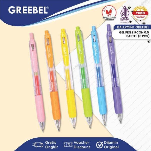 GREEBEL Pulpen Gel / Gel Pen GP-509 Zircon Pastel Colour 0.5 (6PCS/SET) / Ballpen Gel Ballpoint Bolpen Bolpoin Pena Gel