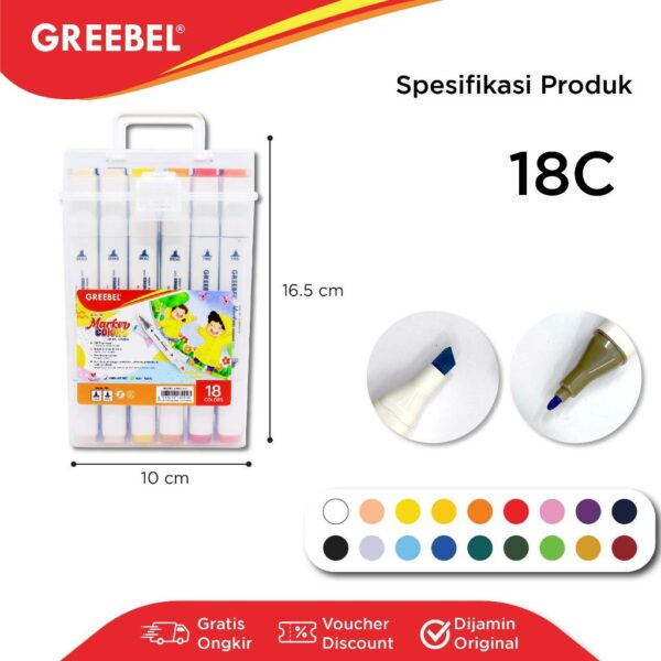 GREEBEL Spidol Warna Warni 1 Set 18 Warna / Water Marker Dual Head / Spidol Sketch Mewarnai Menggambar & Kaligrafi