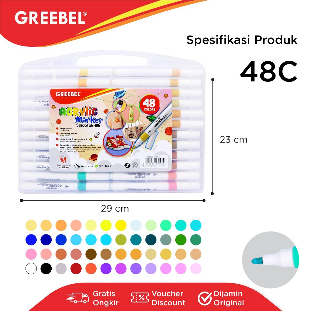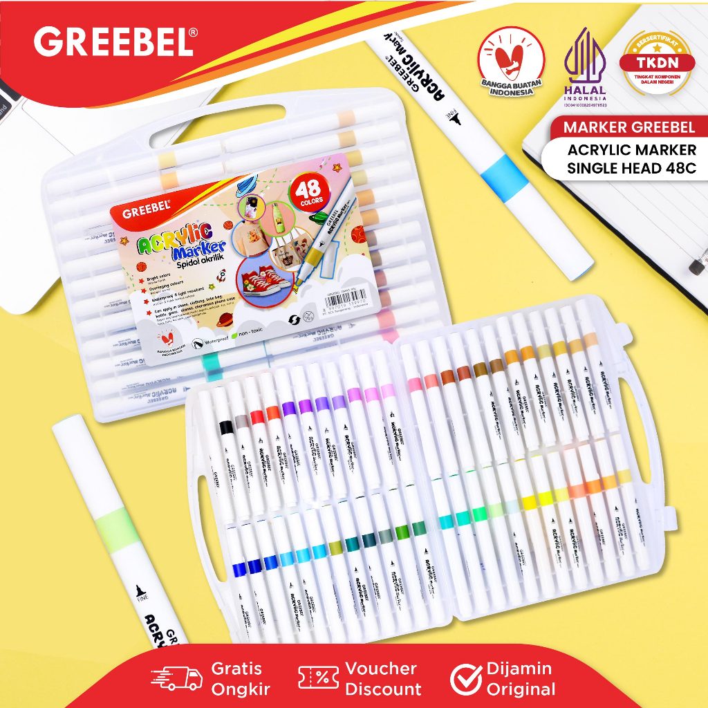 GREEBEL Spidol Warna Warni 1 Set [48 WARNA] Spidol Marker Acrylic Single Head / Sketch Marker Spidol Set