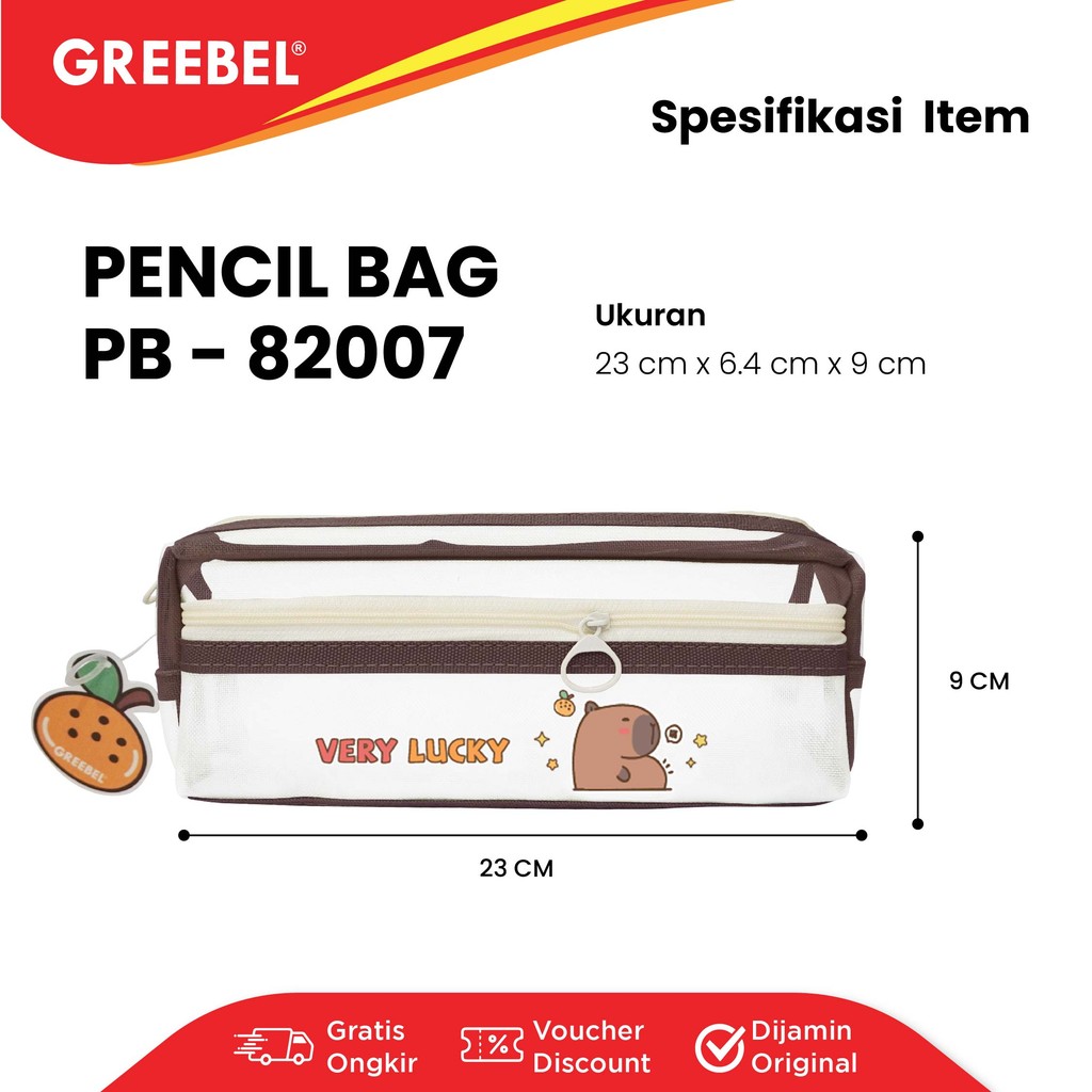 GREEBEL Tempat Pensil Zipper Capybara / Kotak Pensil ( PB 82007) / Pencil Case / Zipper Bag