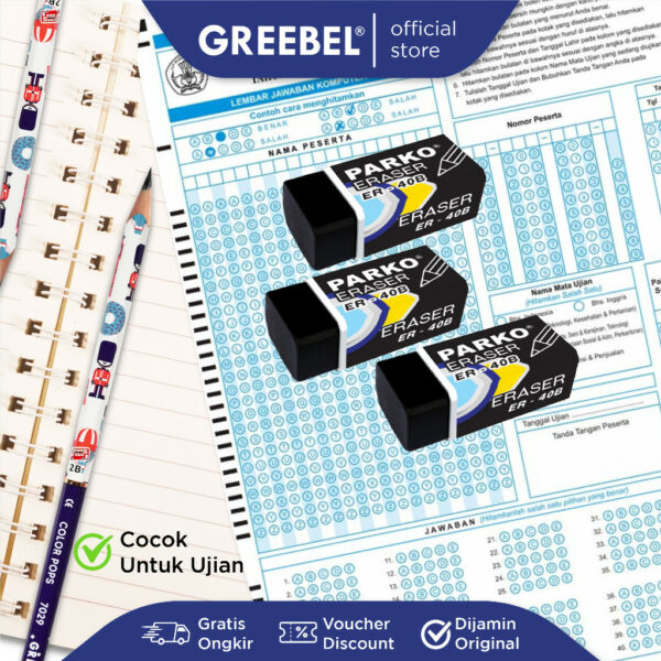 Penghapus Parko, penghapus pensil berkualitas dengan hasil bersih tanpa bekas dan tidak merusak kertas. Cocok untuk keperluan sekolah, kantor, atau seni. Aman dan ramah lingkungan.