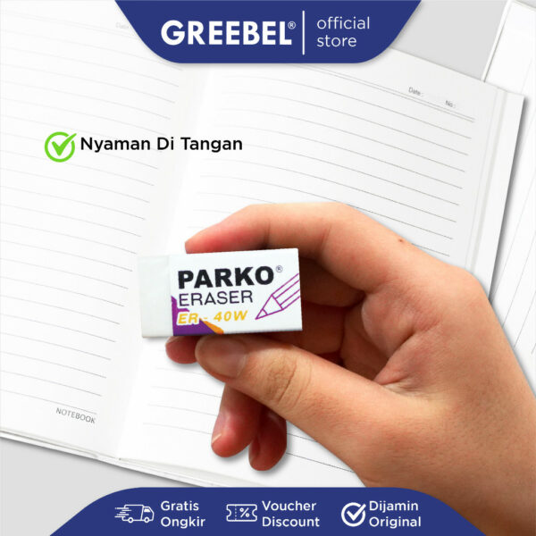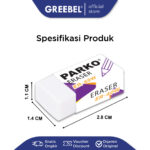 Penghapus Parko, penghapus pensil berkualitas dengan hasil bersih tanpa bekas dan tidak merusak kertas. Cocok untuk keperluan sekolah, kantor, atau seni. Aman dan ramah lingkungan.