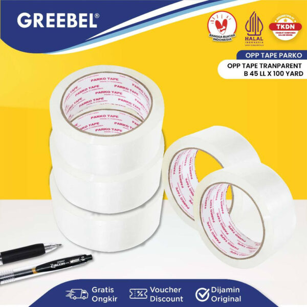 PARKO Lakban Selotip Bening Isolasi Tape 100 Yard / B 45 LL (PCS)