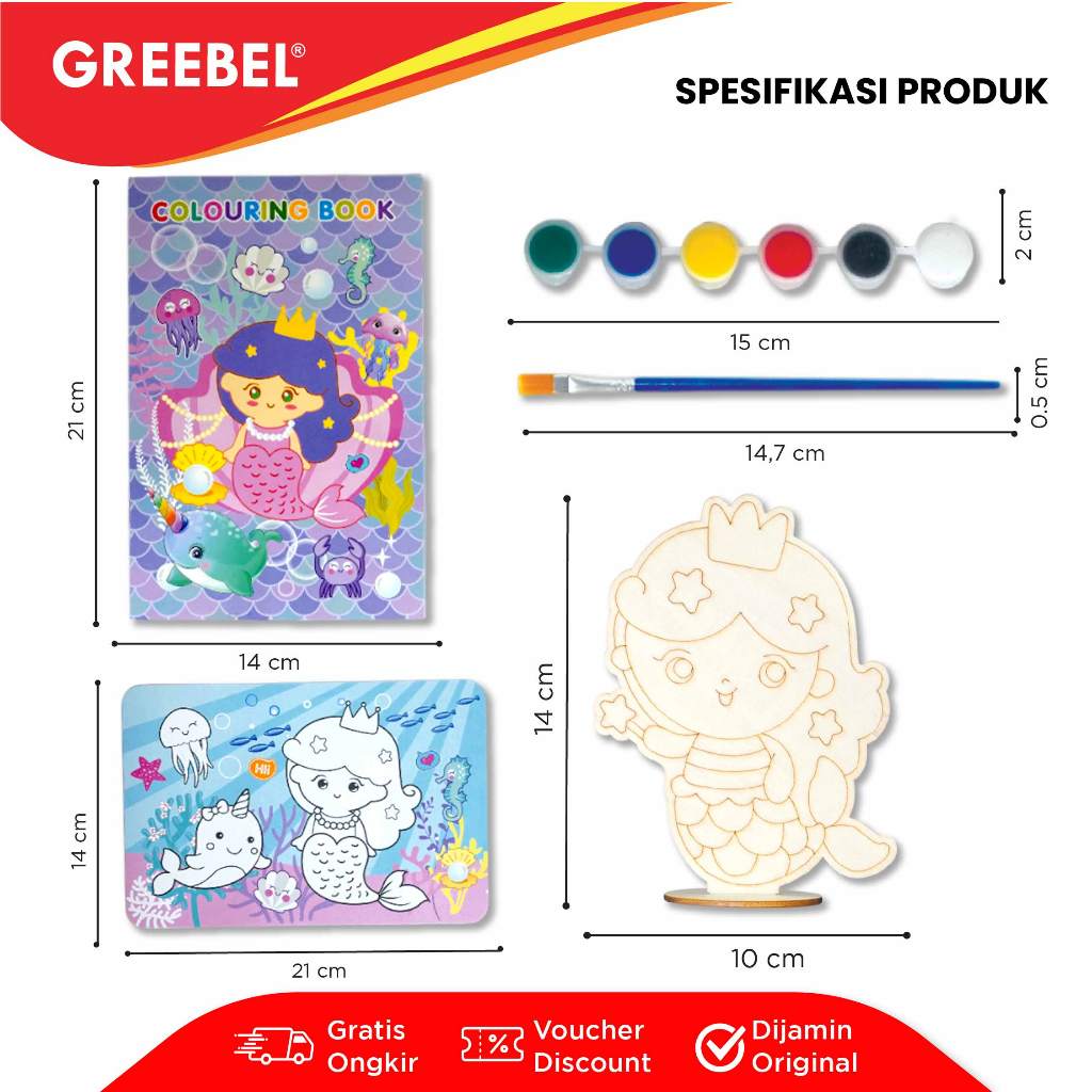 -Media Mewarnai Dari Kayu , Ukuran : 14 x 21 cm