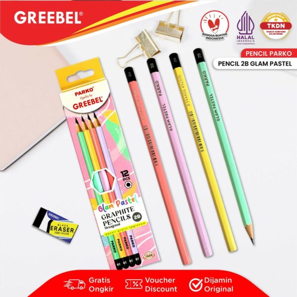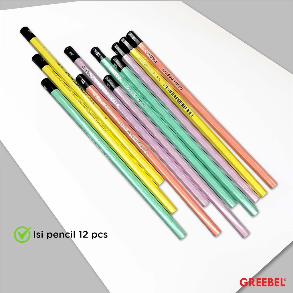 PARKO Pensil kayu 2B Glam Pastel (12PCS/SET) / Pensil Tulis Pastel Graphite Ujian sekolah Pensil Gambar