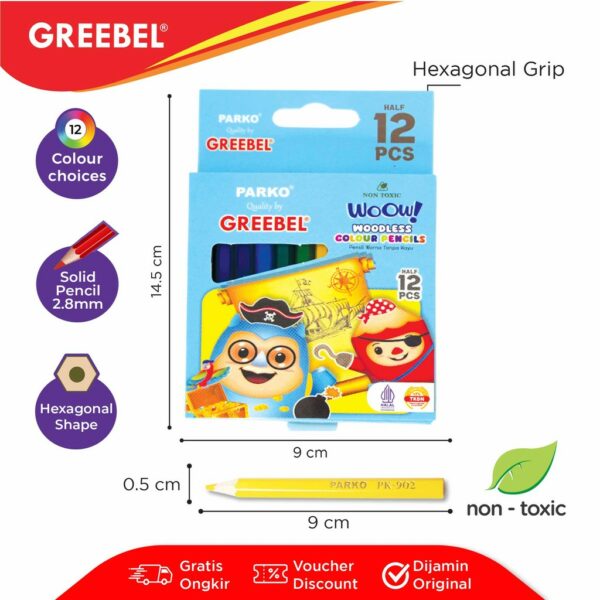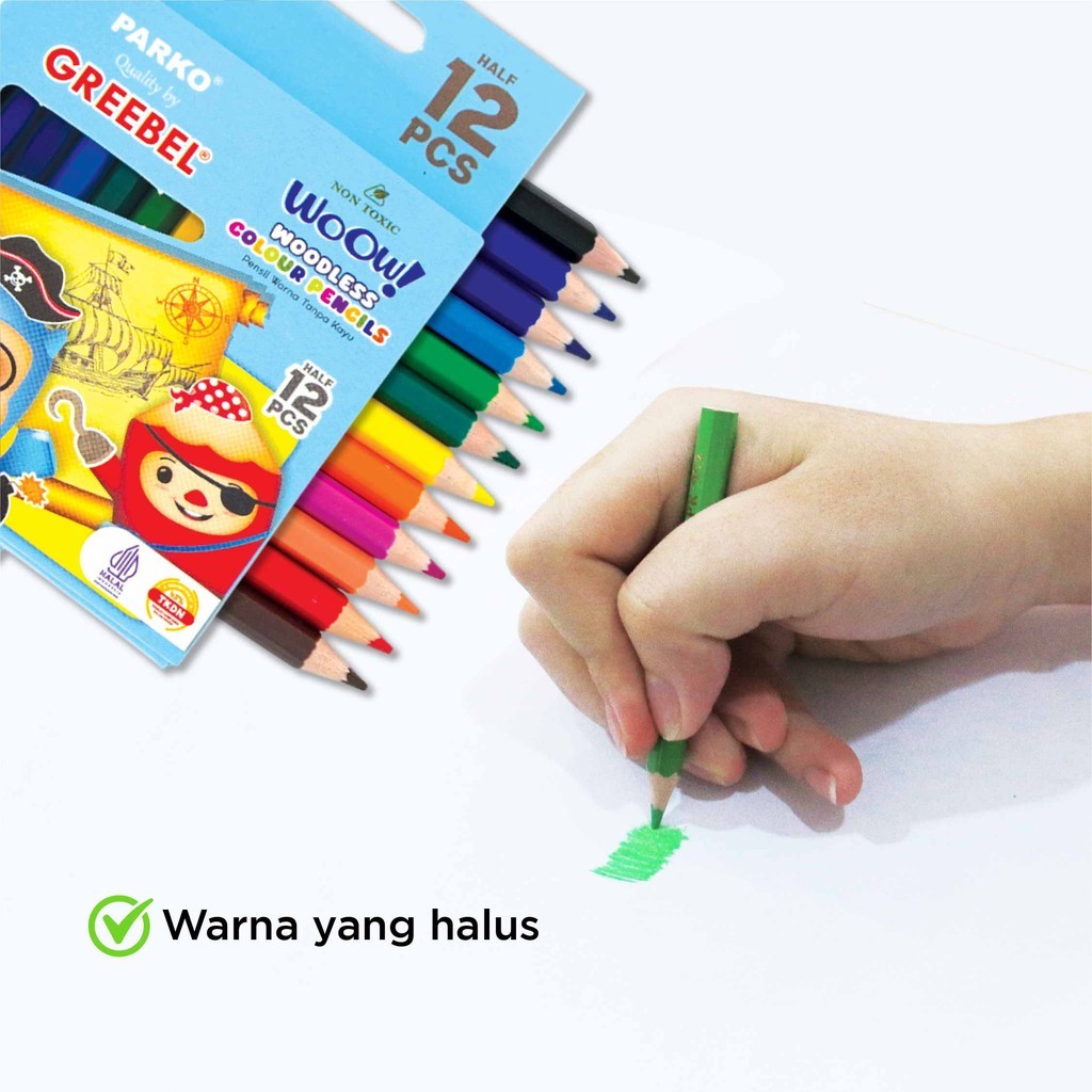 PARKO Pensil Warna 12 Warna / Woodless Colour (12 HALF PKW-906) / Colored Pencil / Warna Lebih Nyata