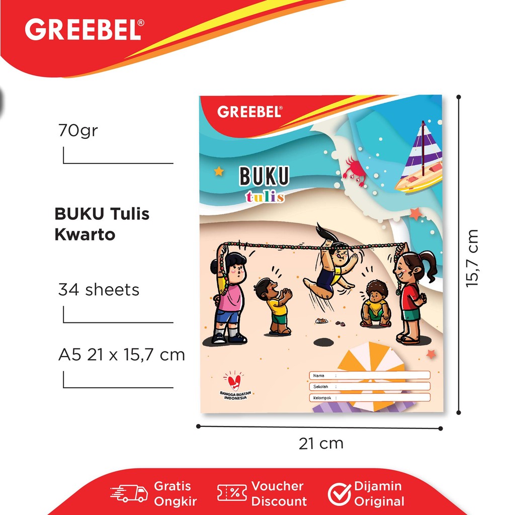 GREEBEL Buku Tulis 34 Lembar Ukuran A5 (PCS) / Buku Tulis Sekolah Qwarto / School Book